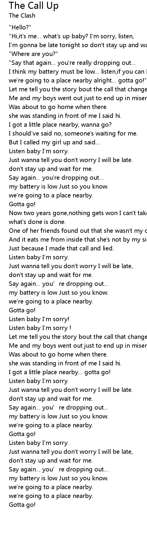 | Listen baby I'm sorry. | |