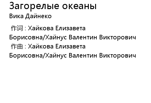 | [00:00.00-1] | 作词 : Хайкова Елизавета Борисовна/Хайнус Валентин Викторович |