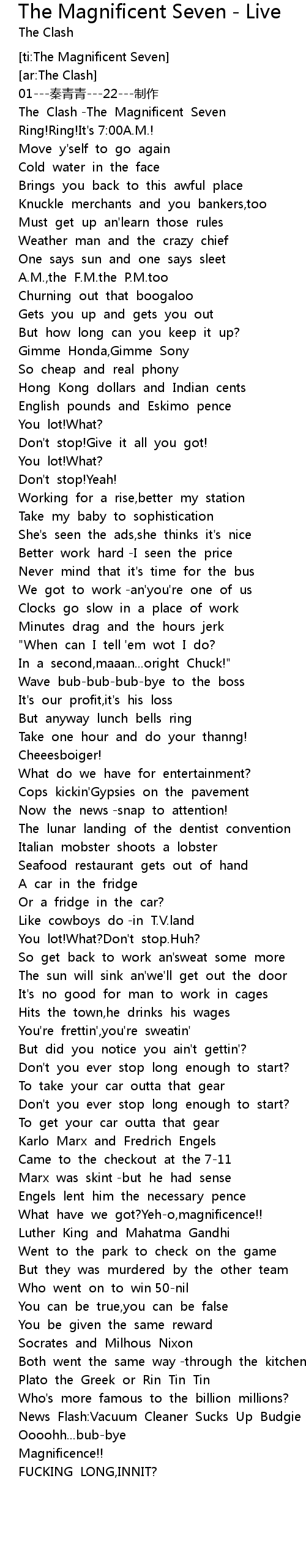 | [00:15.96] | The Clash -The Magnificent Seven |