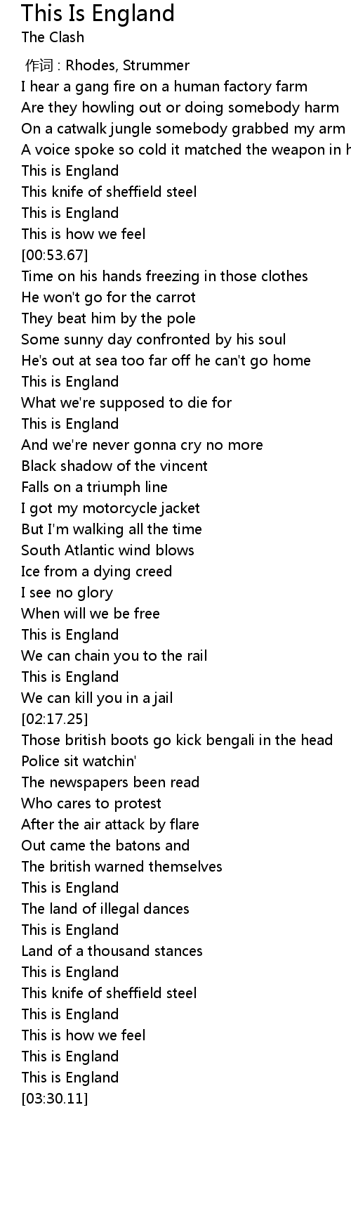 | [01:35.42] | This is England |
