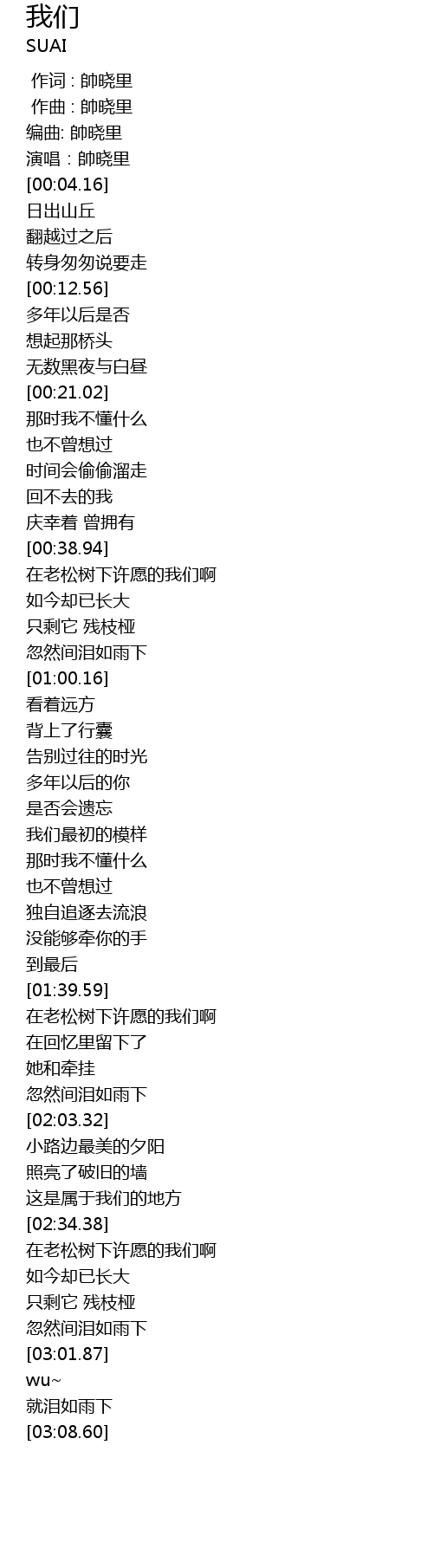 | [01:41.57] | 在老松树下许愿的我们啊 |
