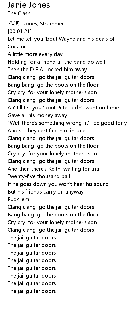 | [01:52.74] | Clang clang go the jail guitar doors |