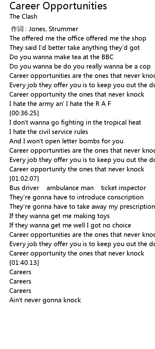 | [00:57.07] | Career opportunity the ones that never knock |