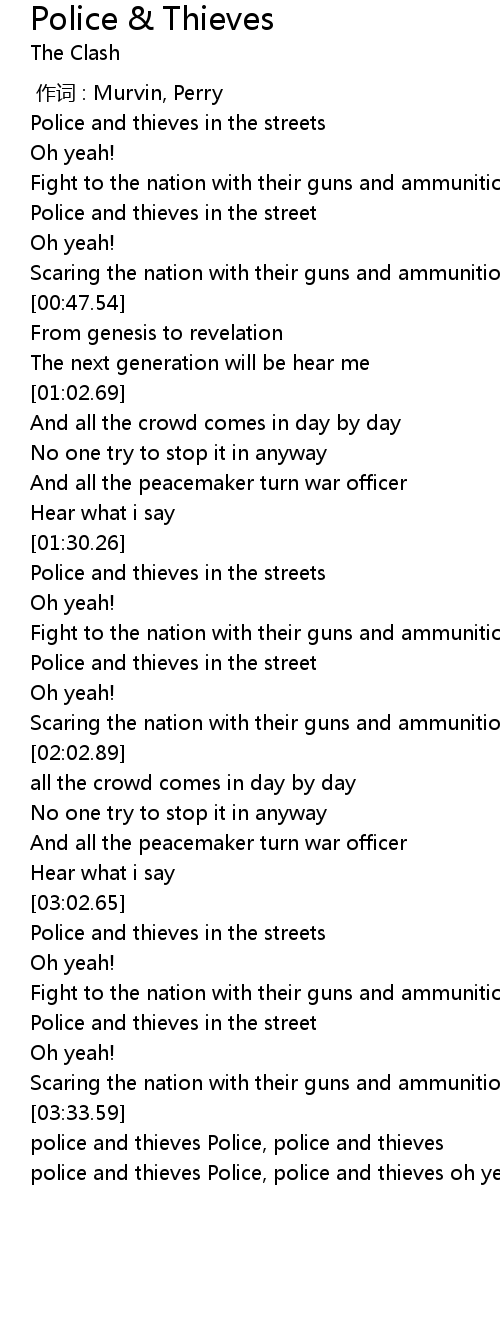 | [03:34.66] | police and thieves Police, police and thieves |