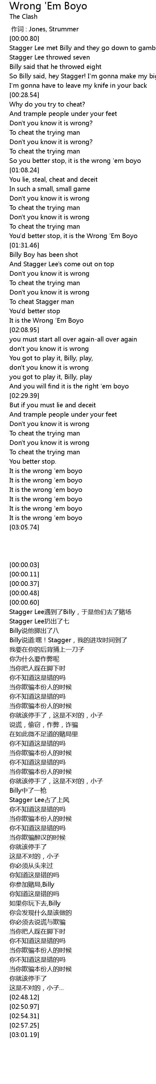 | [01:23.74] | You'd better stop, it is the Wrong 'Em Boyo |