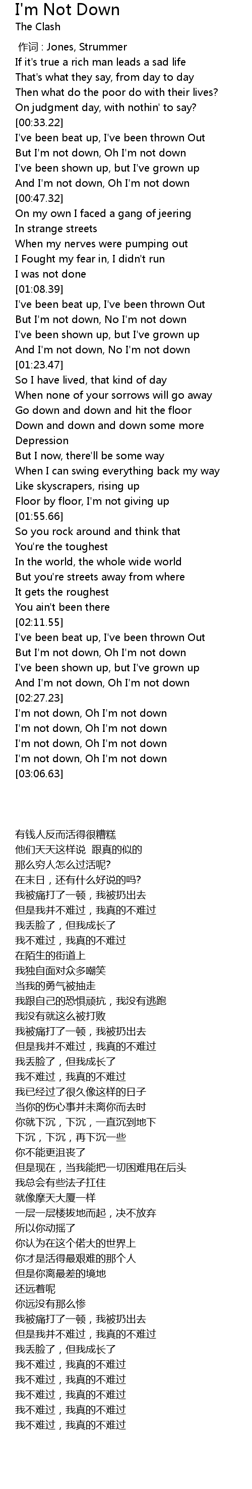 | [02:34.61] | I'm not down, Oh I'm not down |