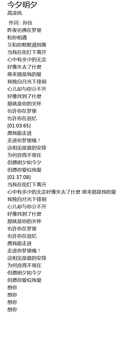 | [01:23.98] | dàn yuàn míng xī rú jīn xī |