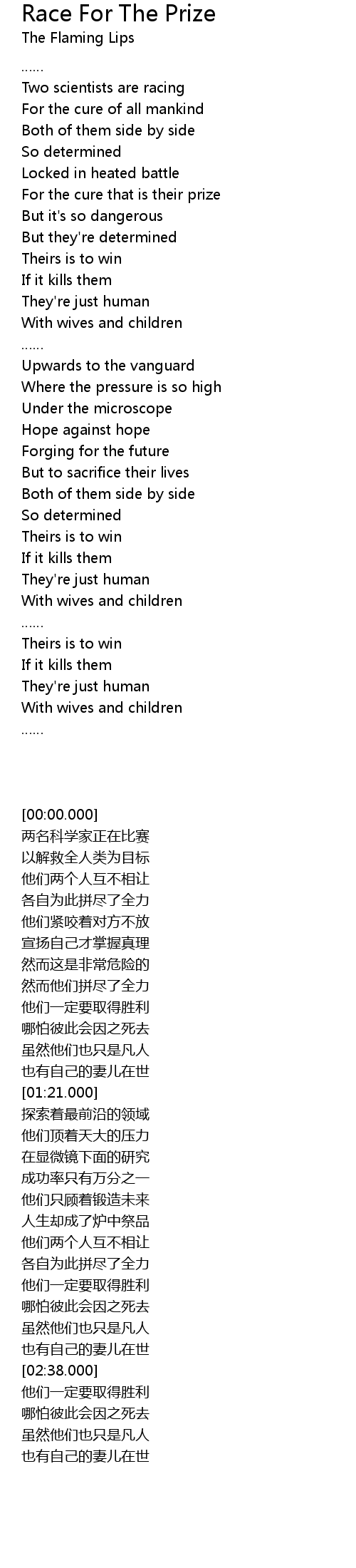 | [00:54.000] | For the cure that is their prize |