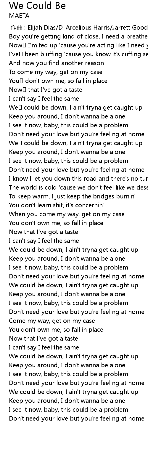 | [00:53.13] | We could be down, I ain' t tryna get caught up |