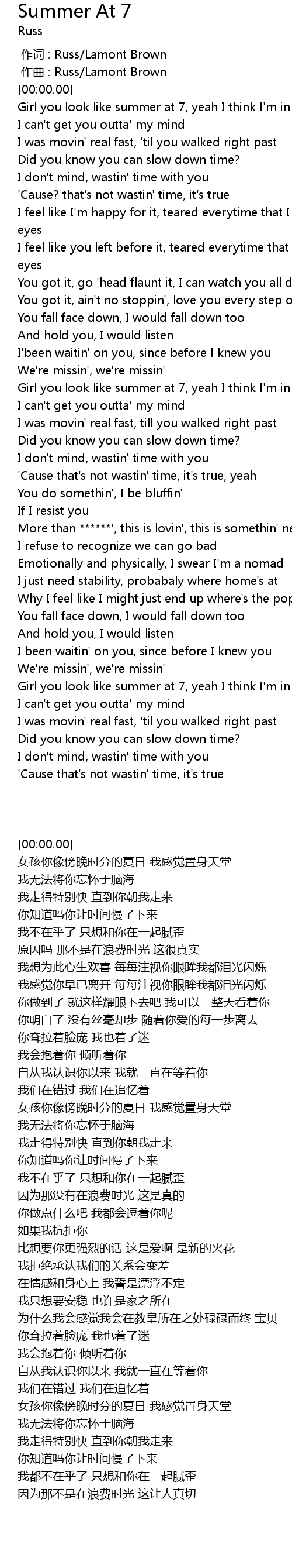 | [00:00.00] | 作词 : Russ/Lamont Brown |