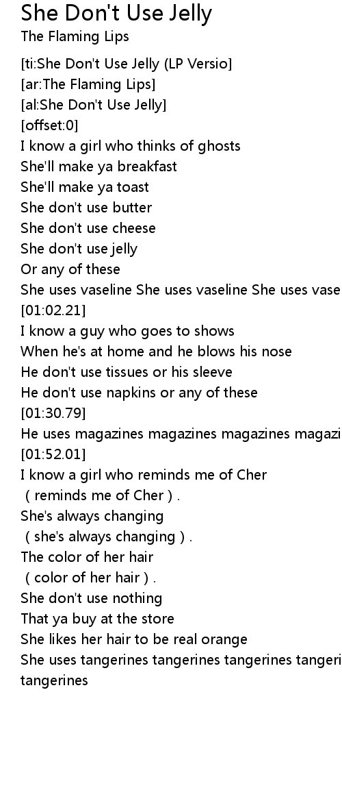 | [00:45.40] | She uses vaseline She uses vaseline She uses vaseline |