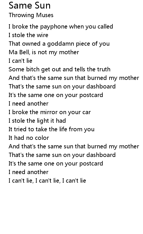 And that's the same sun that burned my mother |
