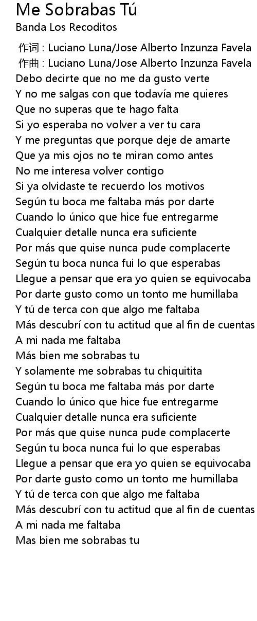 | [01:51.330] | Y solamente me sobrabas tu chiquitita |