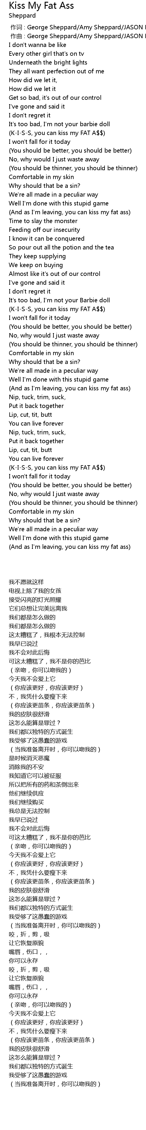 | [00:34.37] | (K-I-S-S, you can kiss my FAT A$$) |