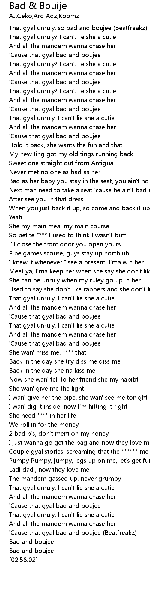 | [00:09.75] | That gyal unruly, so bad and boujee (Beatfreakz) |