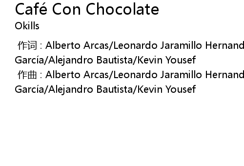 | [00:00.00-1] | zuò qǔ : Alberto Arcas Leonardo Jaramillo Hernandez Carlos Jorge Garcí a Alejandro Bautista Kevin Yousef |