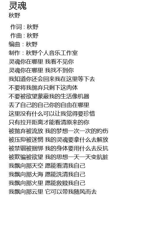 | [00:40.684] | 灵魂你在哪里 我找不到你 |