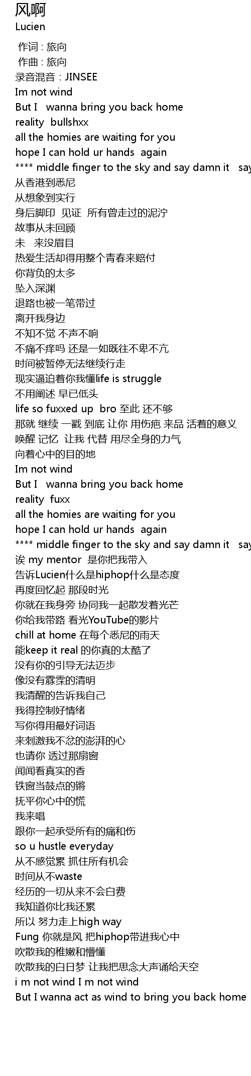 | [02:29.418] | Fung 你就是风 把hiphop带进我心中 |