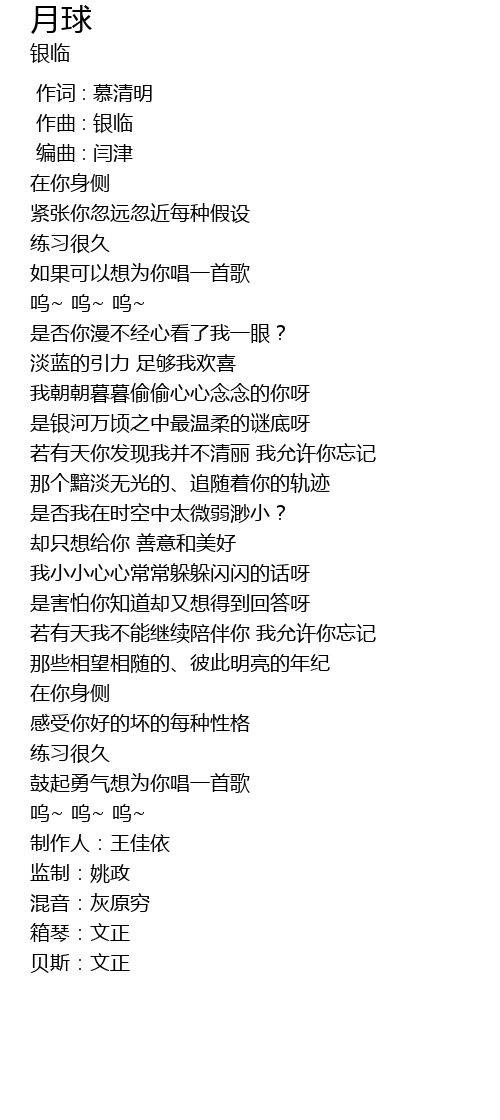 | [01:24.407] | wo zhao zhao mu mu tou tou xin xin nian nian de ni ya |