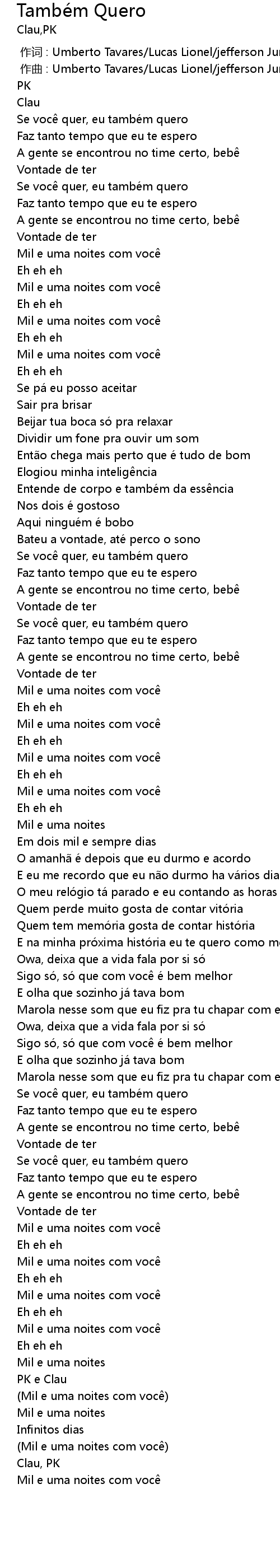 | [00:10.46] | Se voc quer, eu tambe m quero |