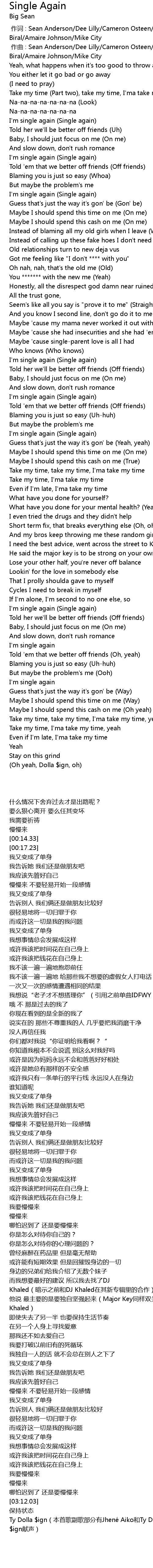 | [00:19.31] | I'm single again (Single again) |