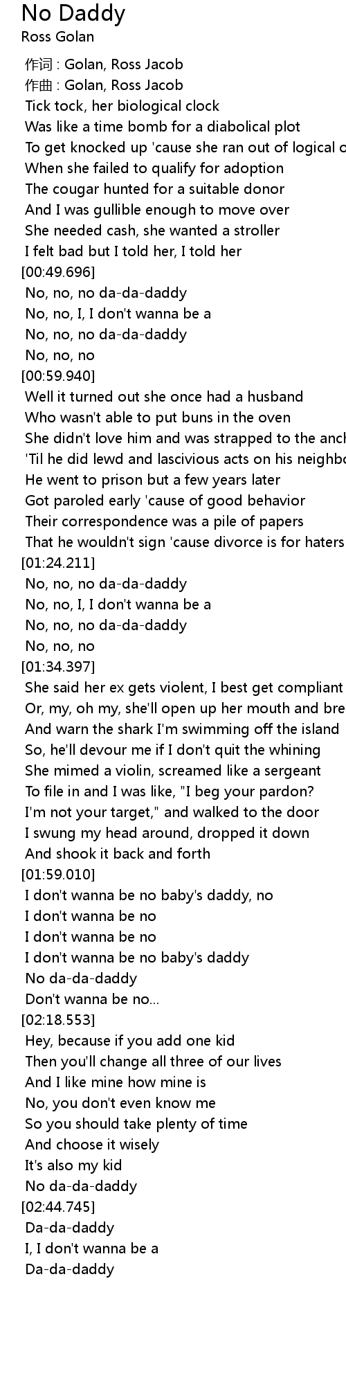 | [01:24.389] | No, no, no da-da-daddy |