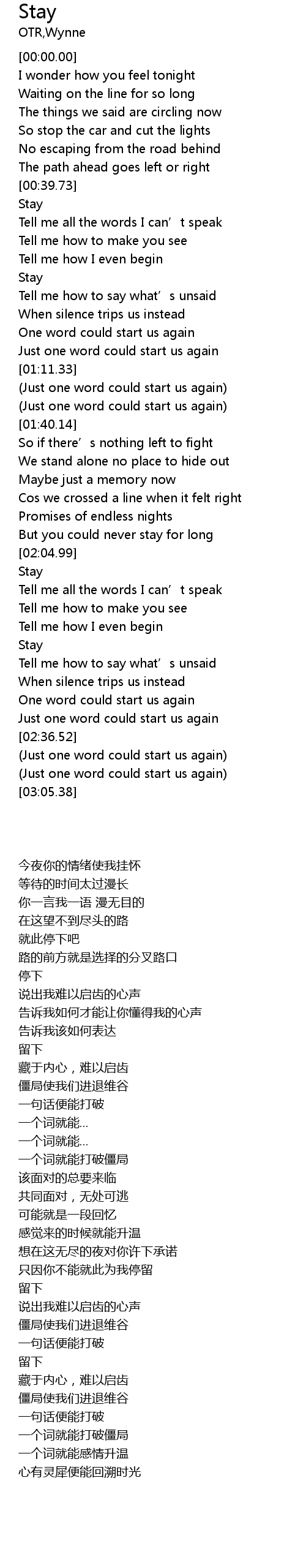 | [00:56.16] | Stay |