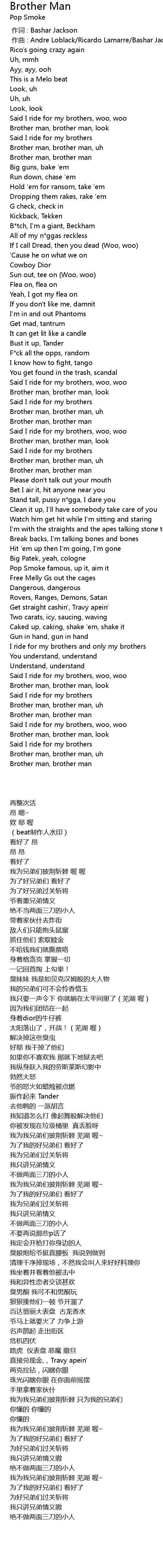 | [00:39.001] | Brother man, brother man |