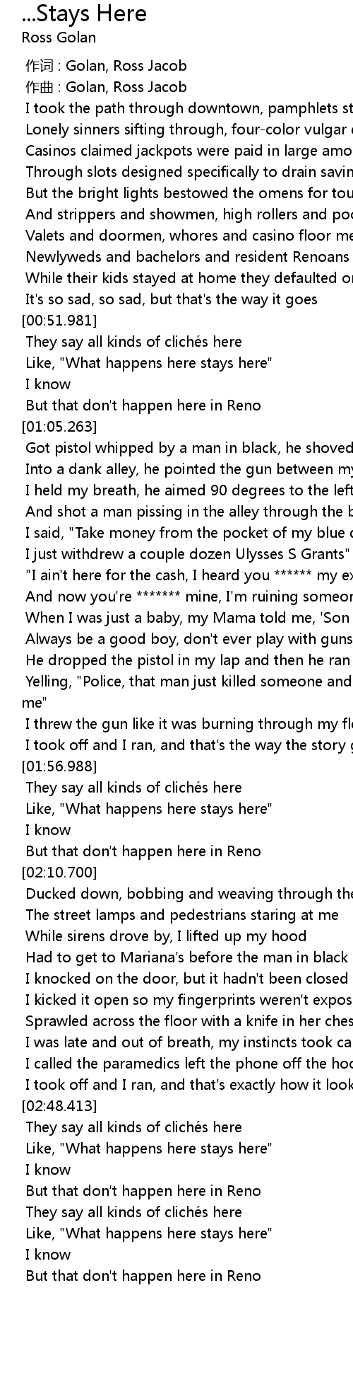 | [00:56.607] | Like, " What happens here stays here" |