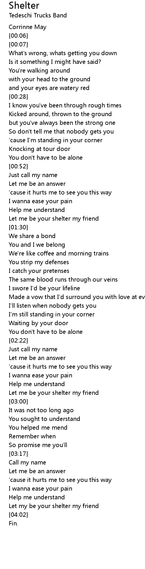 Let me be your shelter my friend |