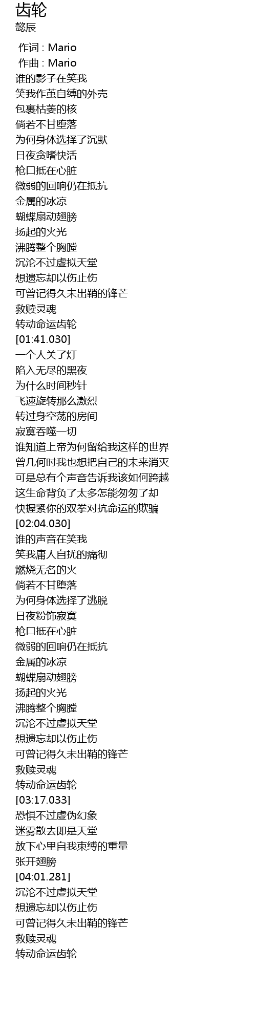 | [04:21.794] | zhuàn dòng mìng yùn chǐ lún |