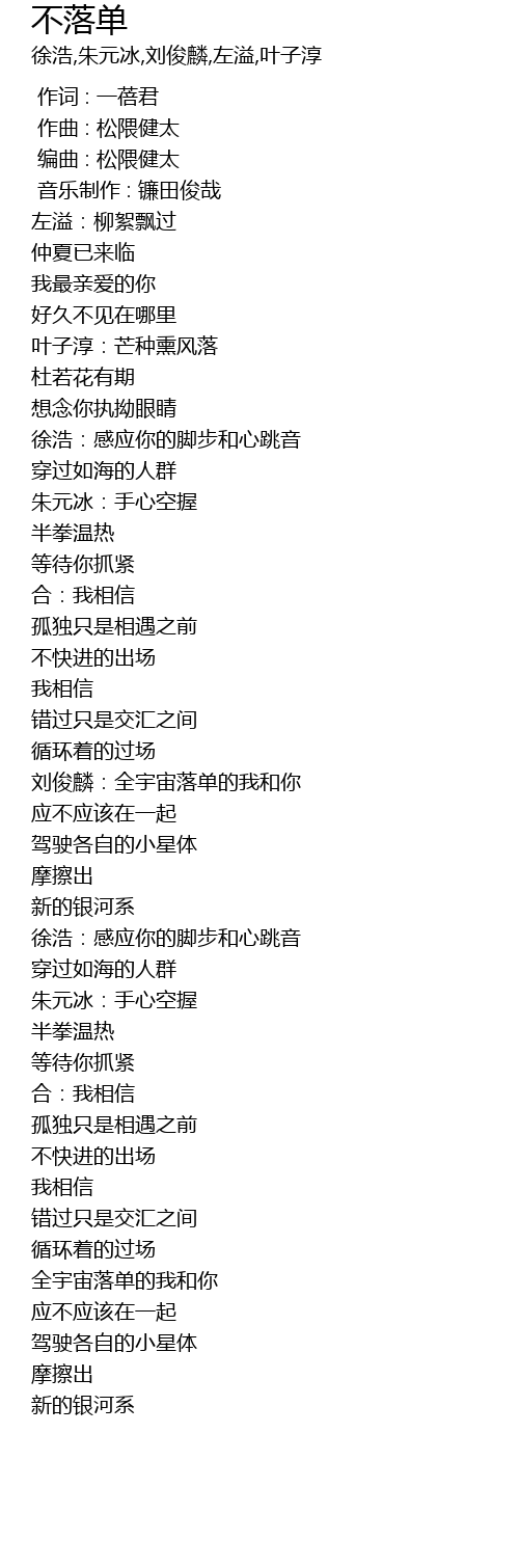 | [01:18.75] | liú jùn lín: quán yǔ zhòu luò dān de wǒ hé nǐ |