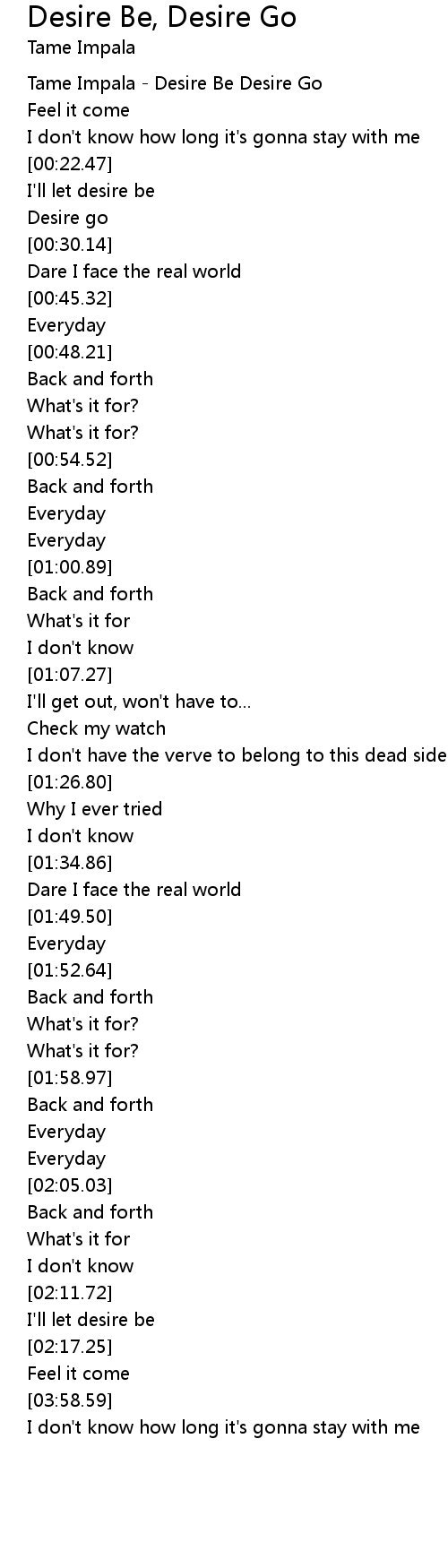 Tame Impala - Desire Be Desire Go |