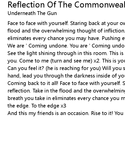 Coming back to it all! Face to face with yourself. Staring back at your own reflection. Take in the flood and the overwhelming thought of infliction. Every breath you take in eliminates every chance you may have. Pushing everything to the edge. To the edge x3 |