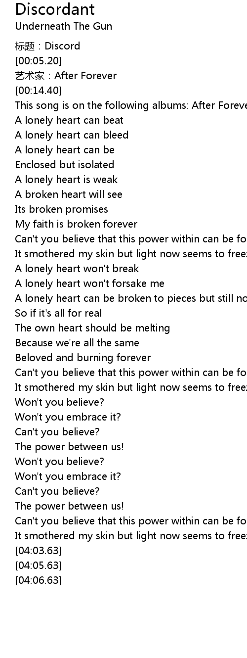 | [01:11.22] | My faith is broken forever |