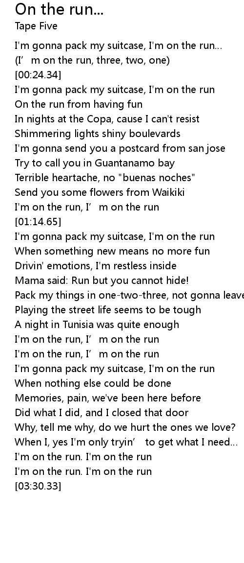 | [00:00.00] | I'm gonna pack my suitcase, I'm on the run… |