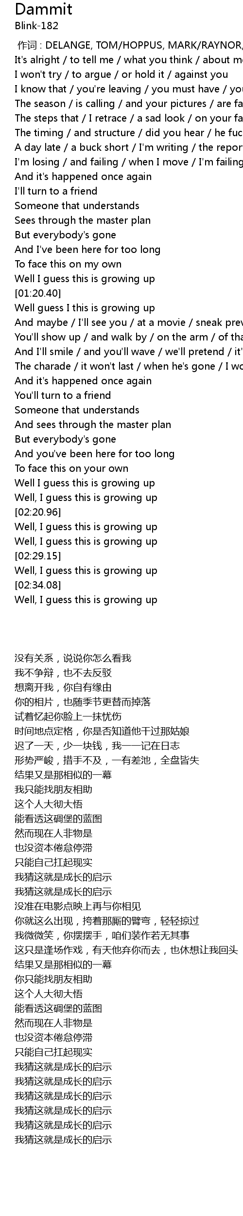 | [00:00.00] | 作词 : DELANGE, TOM/HOPPUS, MARK/RAYNOR, SCOTT |