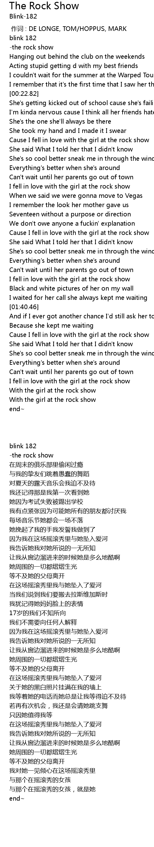 | [01:16.00] | Cause I fell in love with the girl at the rock show |