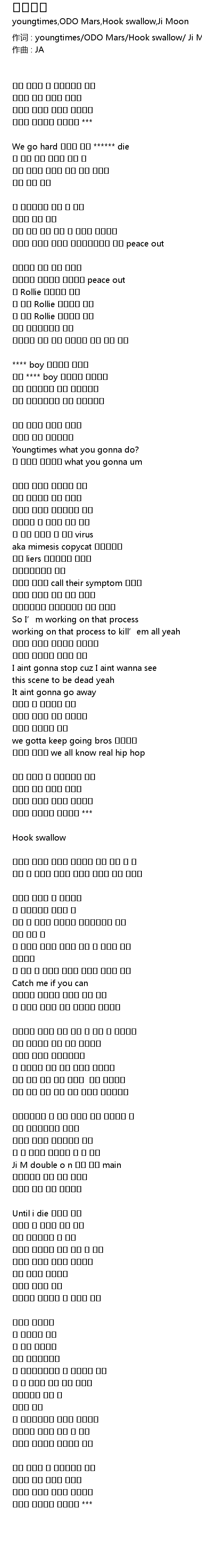 作词 : youngtimes/ODO Mars/Hook swallow/ Ji Moon |