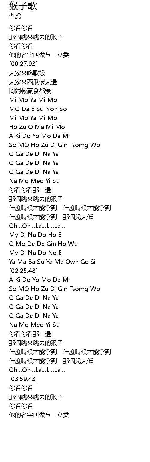 | [03:35.30] | 那個跳來跳去的猴子 |
