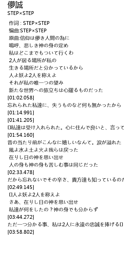 | [00:01.510] | 原曲:信仰は儚き人間の為に |