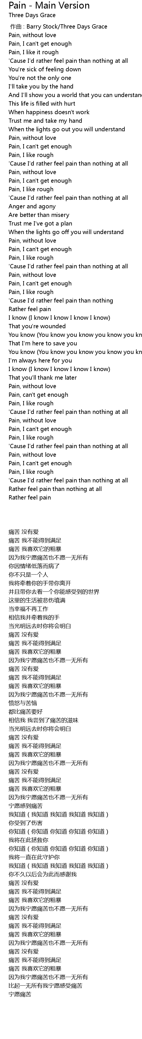 | [02:53.31] | ' Cause I' d rather feel pain than nothing at all |