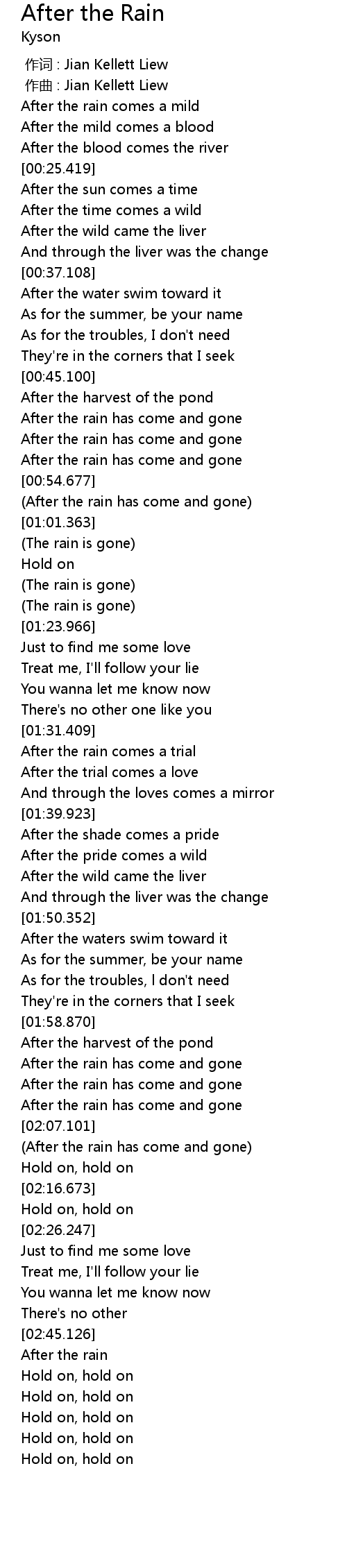 | [00:56.811] | (After the rain has come and gone) |
