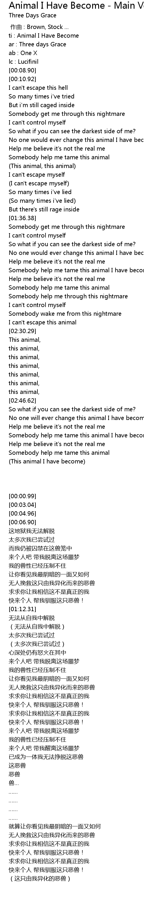 | [00:00.99] | ti : Animal I Have Become |