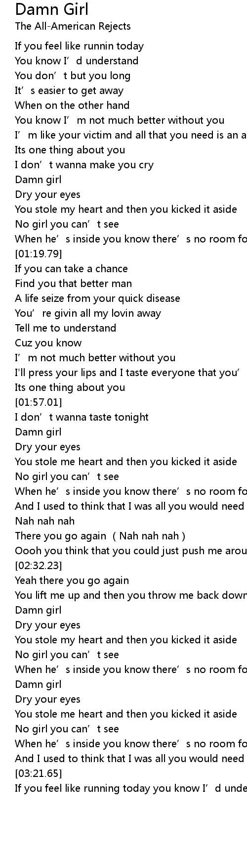 | [01:02.05] | Damn girl |