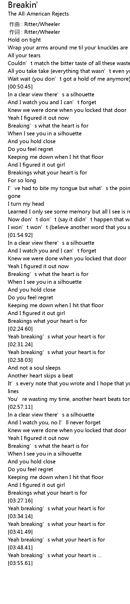 | [03:43.52] | Yeah breaking’s what your heart is for |