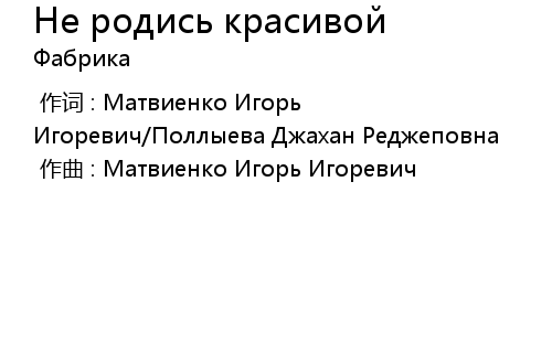 | Song | Не родись красивой |