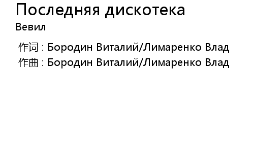 | [00:00.00-1] | 作词 : Бородин Виталий/Лимаренко Влад |
