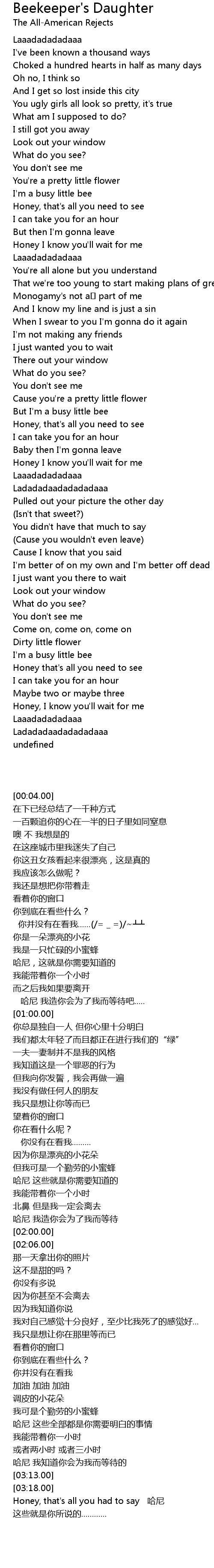 | [01:42.00] | But I'm a busy little bee |