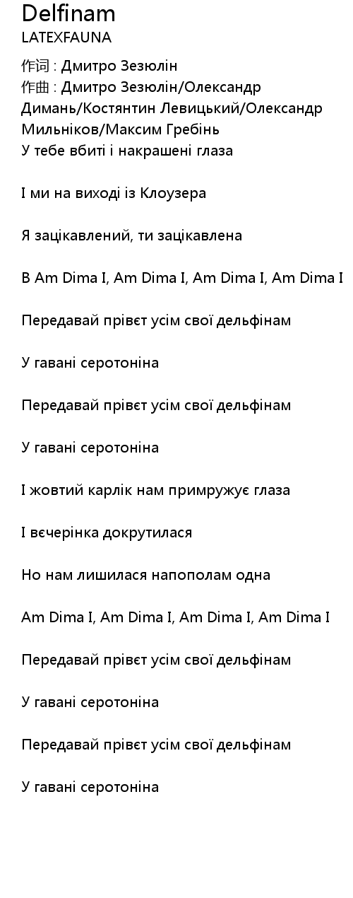 作词 : Дмитро Зезюлін |